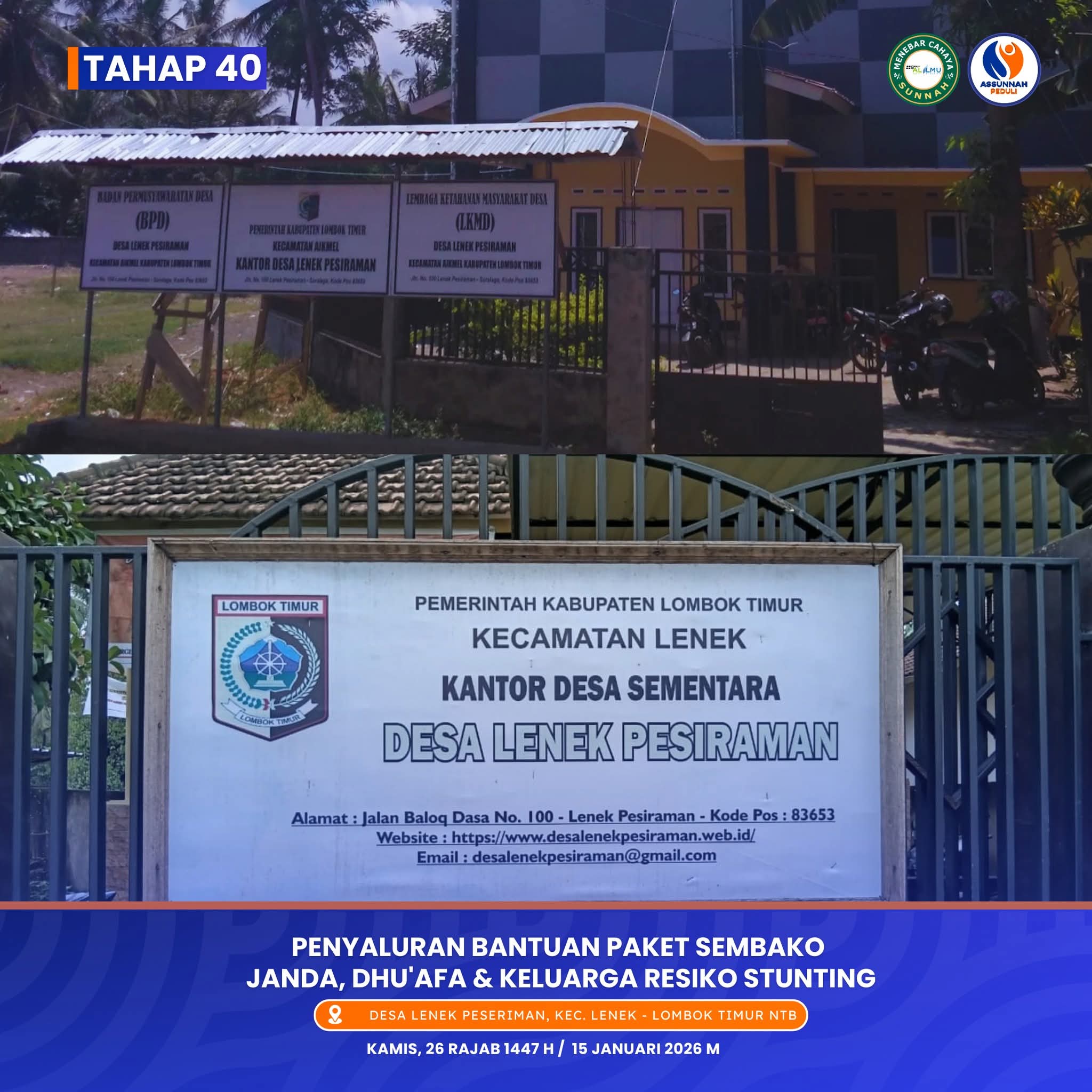 PENYALURAN SANTUNAN – EDISI JANUARI 2026 – ROJAB 1447 : Ds Lenek Peseriman, Lombok Timur