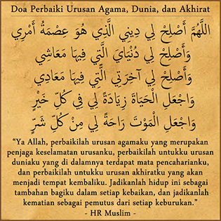 Ref : http://rumaysho.com/amalan/doa-untuk-memperbaiki-urusan-agama-dan-dunia-986