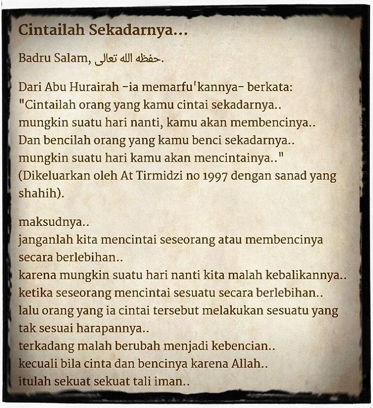“Cintailah orang yang kamu cintai sekadarnya..