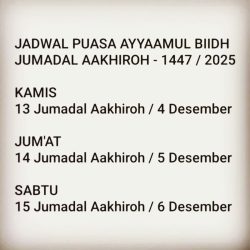 Jadwal Puasa Ayyaamul Biidh – Jumadal Aakhiroh 1447 Hijriyah
