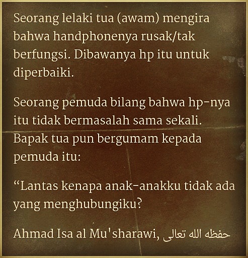 Kubolak-balikkan badan, namun tidak juga rasa kantuk itu datang. Malah aku teringat akan buku saku yang diberikan laki-laki Arab Saudi tempo hari itu. Susah payah, akhirnya aku berhasil mengeluarkan buku itu dari bawah kolong lemariku.
